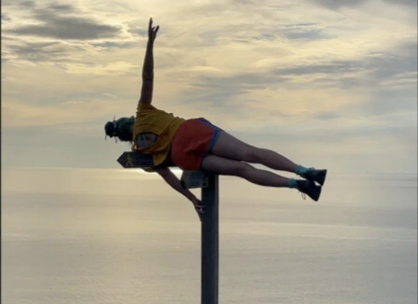 Momentwm (2026) is a bilingual vertical documentary short by videographer Lidia Mahillon and Welsh circus artist Jess Allen, exploring how site-specific movement practice and her upbringing in the West Wales landscape informed Jess's experimental aerial dance research 'Momentum Lab'.