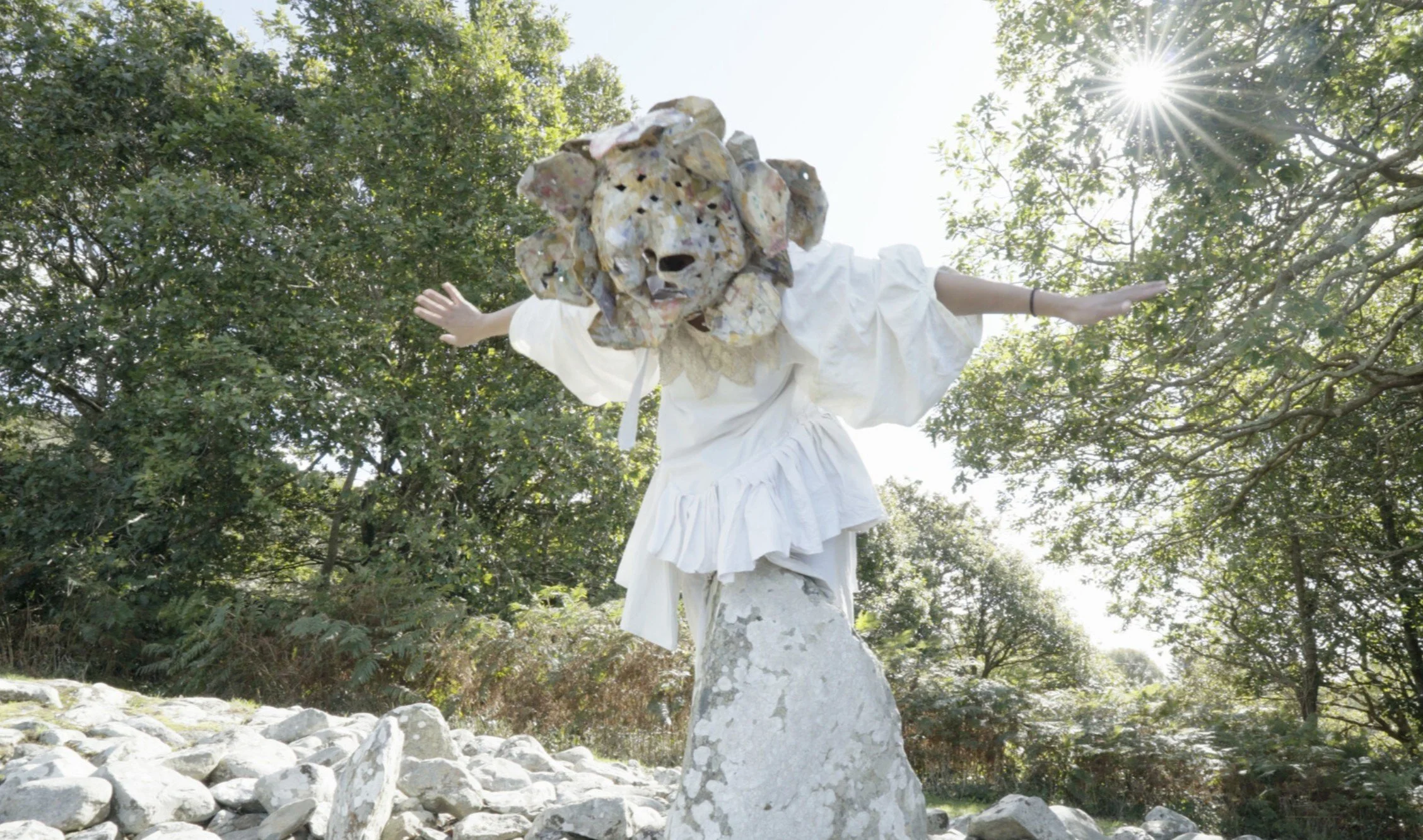 In this new work, Anushiye Yarnell uses costume, text, voice, and movement to conjure the figure of Blodeuwedd – the hybrid flower-woman transformed into an owl, found in the fourth branch of The Mabinogion. Through this figure, the artist voices other fallen women, mothers and daughters, and feminine archetypes that manifest across time, borders, religions, and systems of thought, to explore the relationship between femininity and the construction of place.