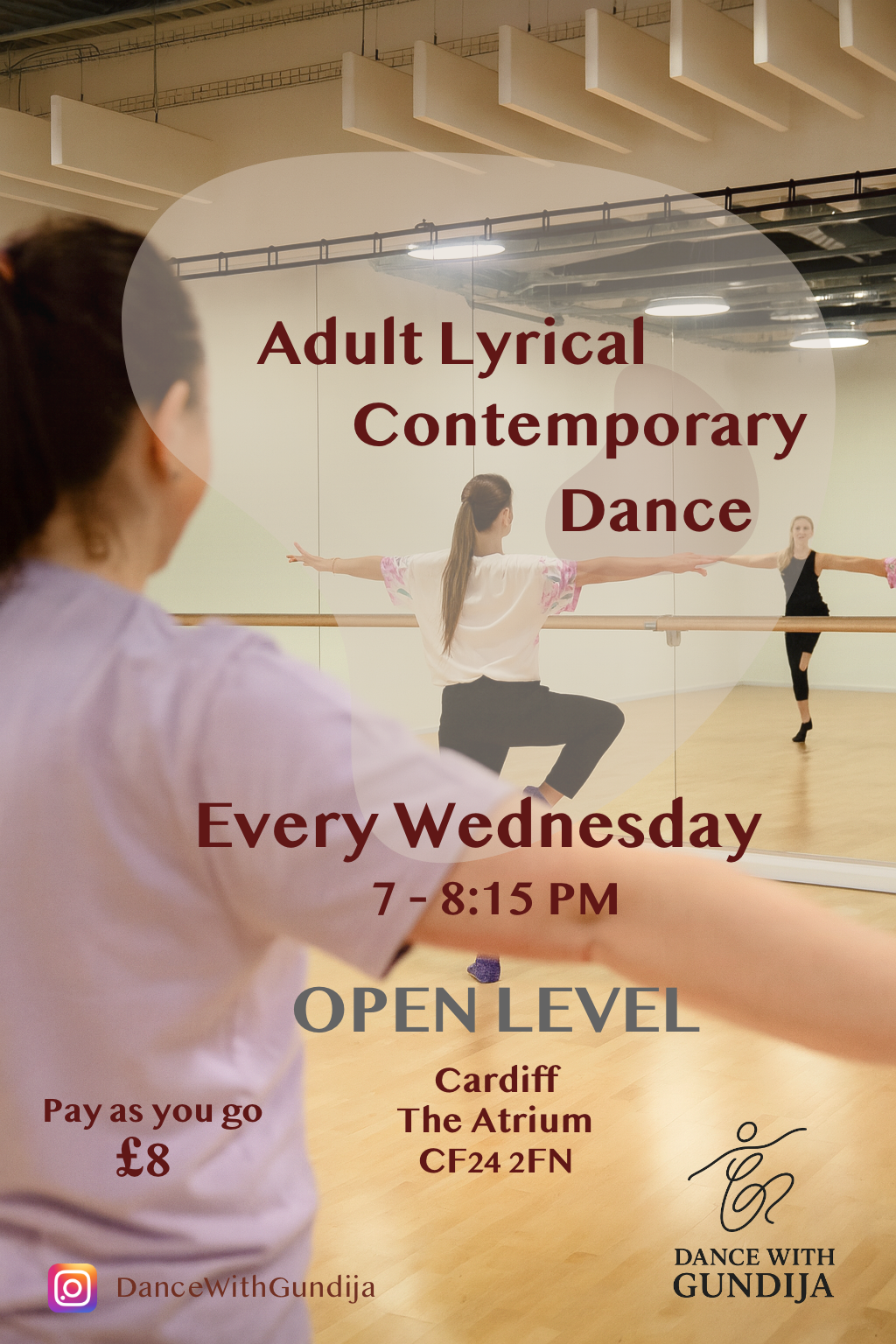 If it’s your first time - feel free to give me a quick message to say you’re coming, so I can meet you at the reception and show you the way to the dance studio once you arrive.